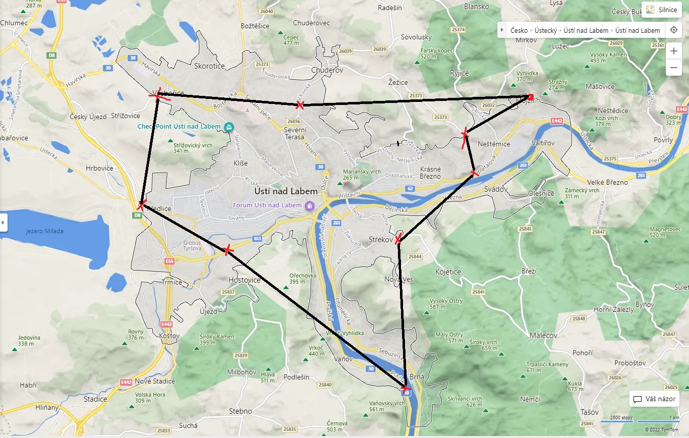 Projekt Hranice vznikl Ústí nad Labem, ve městě, jehož okraje, horizontální, vertikální, periferní a společenské reflektuje. Je založen na procesu poznávání a ohmatávání místa v mezích jeho okrajů definovaných značkami začátku/ konce obce. Samotné putování výhradně mezi značkami, či jinými hraničními body, reflektuje jak naše pomyslné vnímání těchto bodů, tak i geografické, politické nebo právní rozdíly. Ať už to je omezení povolené rychlosti, nebo naše prosté uvědomění, že jsme v Ústí nad Labem. Prostá hranice velmi ovlivňuje naše působení a možnosti. Na předem vybraných trasách se v určeném systému vydávají účastníci projektu, aby toto místo nalezli, fotograficky zachytili, odeslali do centra města k vytištění a s touto fotografií putovali na další místo, kde se s ní vyfotí a vše se opakuje. Proces má charakter hry, kterou však spíše s určitým nadhledem ironicky komentuje. Kombinuje digitální technologie a internet, ale zároveň zahrnuje nutnost donést konkrétní fyzický výtisk na předem dané místo.