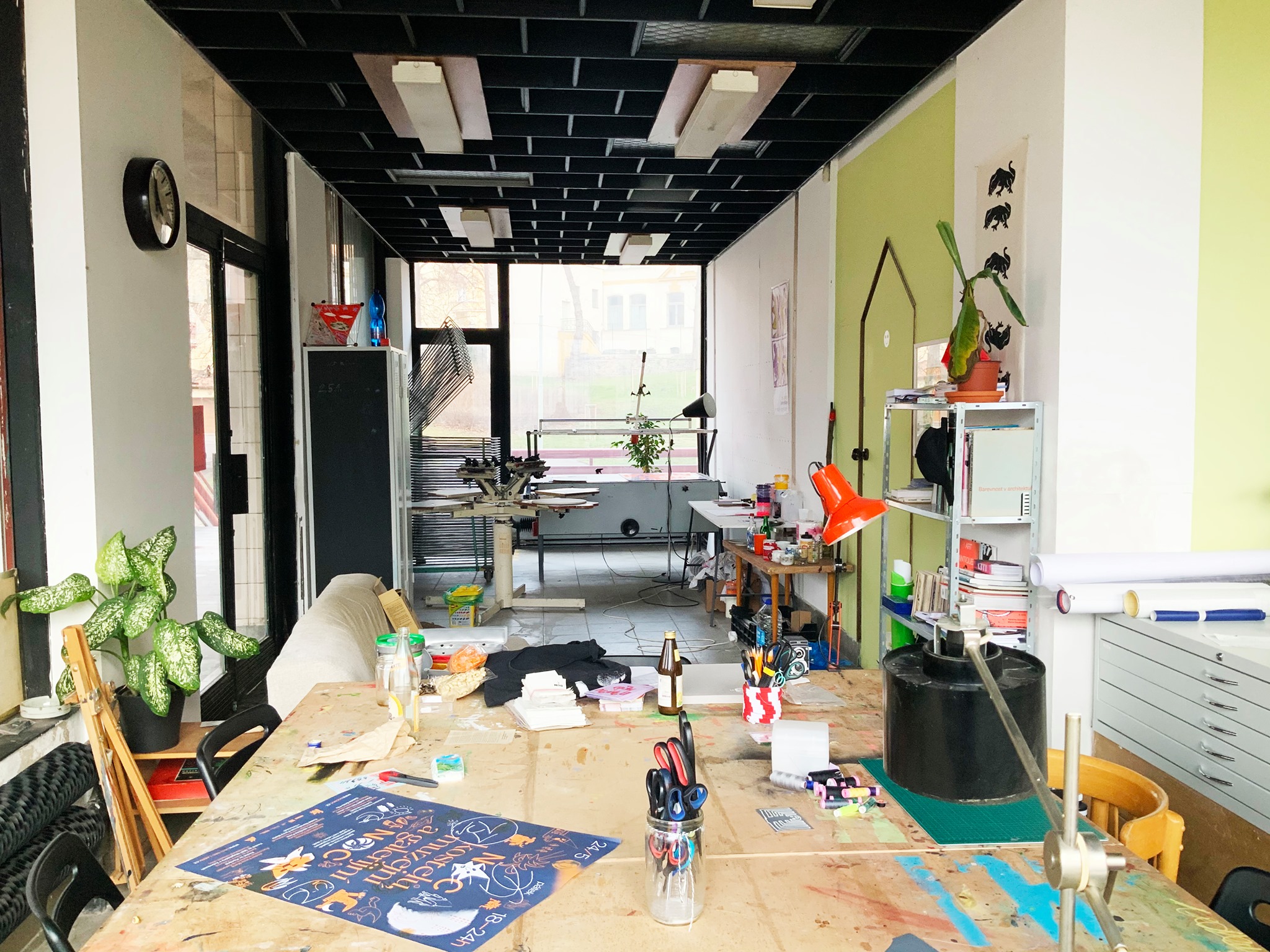 During the course, the participants will experience the whole process of screen printing. From making their own design and its pre-print preparation, through exposure and screen preparation, to the final print. All process accompanied by professional explanation and supervision. The aim is to realize own motif by printing colours on various materials – paper and textiles. At the end of the course, everyone will be introduced to the possibilities of graphic screen printing techniques and its further use in practice. The results will be presented in the gallery “Venkovka” and in front of the Workshop U Pavouka.