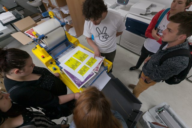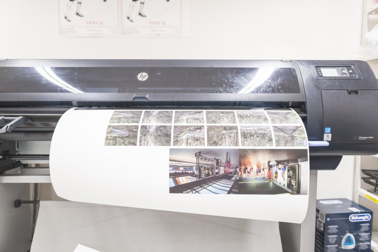 Large format print centre for FAD students. Print is possible on all kinds of paper, films, banner or adhesive films and vinyls with maximum width 1524 mm.