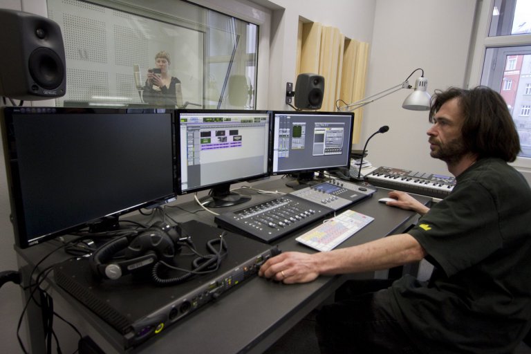 Audiovisual studio is used for editing sound and video for wide range of art projects, in which professional level of sound output during the recording, editing and mastering is needed. Studio is built as a sound adapted space with separate rooms for recording and editing. It is run by Department of Electronic Imagery and is opened to all students of FAD.