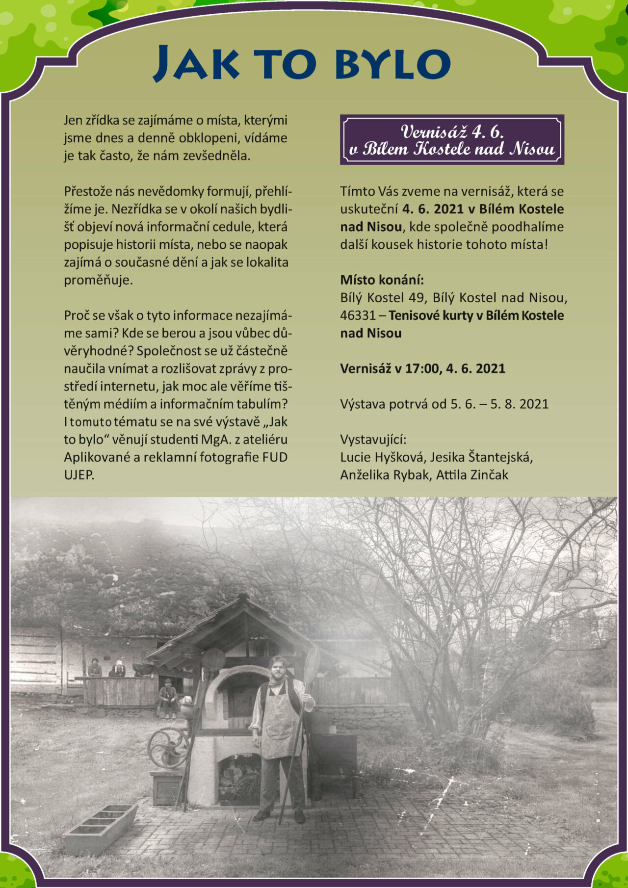 Srdečně vás zveme na zahájení výstavy Jak to bylo, která proběhne v pátek 4. 6. od 17 hodin v Bílém Kostele nad Nisou.
