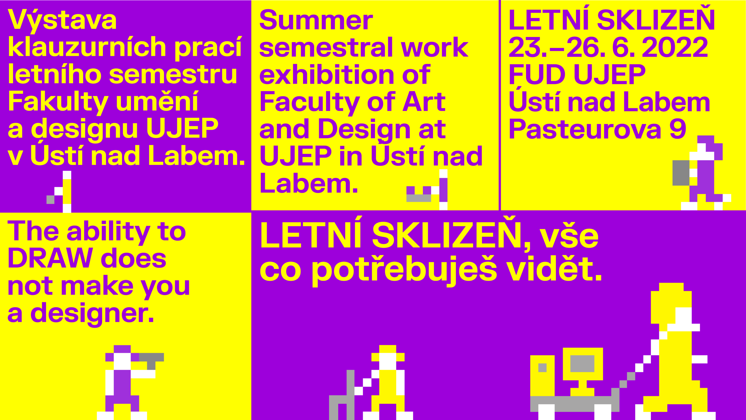 Výstava studentských klauzur se otevírá již 23. 6. 2022.Tato výstava představí aktuální letní semestrální práce našich studentů a studentek akademického roku 2021/2022.